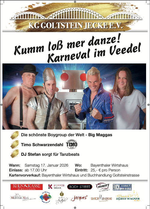 Schau gerne regelmäßig vorbei, damit du nichts verpasst. Wir freuen uns darauf, mit dir im Veedel zu feiern, zu lachen und die kölsche Karnevalstradition zu leben.